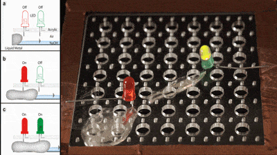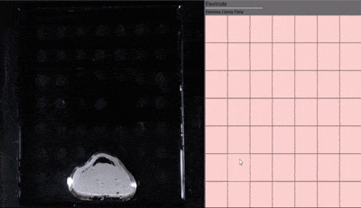 This project investigated a novel control method to program the shape of a liquid metal and allow unique organic animations based on spatio-temporally controlled electric fields. In particular, we successfully manipulated a droplet of liquid metal (Gallium Indium eutectic alloy) by a 7x7 electrode array prototype system, featuring an integrated image tracking system and a simple GUI. Exploiting the strong dependance of EGaIn’s surface tension on external electric voltages, multiple electrodes are dynamically controlled to manipulate the liquid metal into a fine-grained desired shape. Taking advantage of the high conductivity of liquid metals, a shape-changing, reconfigurable smart circuit can be considered as one of unique applications of the proposed method. We explored system constraints and the overarching challenge of controlling liquid metals in the presence of phenomena such as splitting, self-electrode interference and finger instabilities. Through this project, we aimed to open the new possibility of liquid based programmable matter for soft robotics, physically reconfigurable electronic devices, and new media art display.
